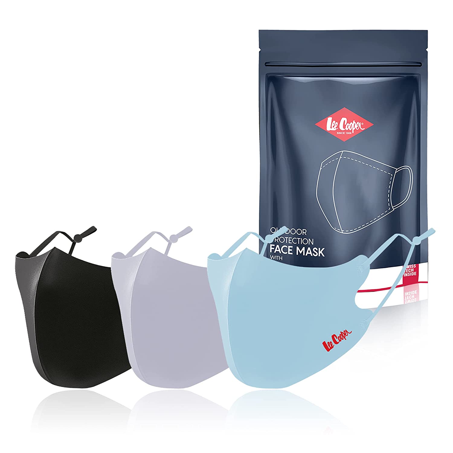 Lee Cooper Lightweight Face Mask for Outdoor Protection, Super Breathable & Reusable Cloth – Pack of 3